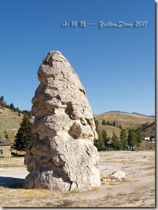 Cap(自由帽)。它有11米高,是由喷泉在一个地方长时间的喷发造成的。因为内部足够大的压力把温泉水喷发的很高,泉水里的矿物质经过几百年来持续缓慢地沉淀,就形成了这样一个柱体。不过现在这个喷泉已经处于休眠期啦。