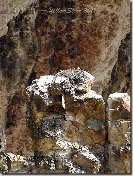 峡谷中高高的石头上,有鹰的巢穴,这是一个多么安全的家啊。鹰妈妈出去觅食了,只有一个鹰宝宝在家。