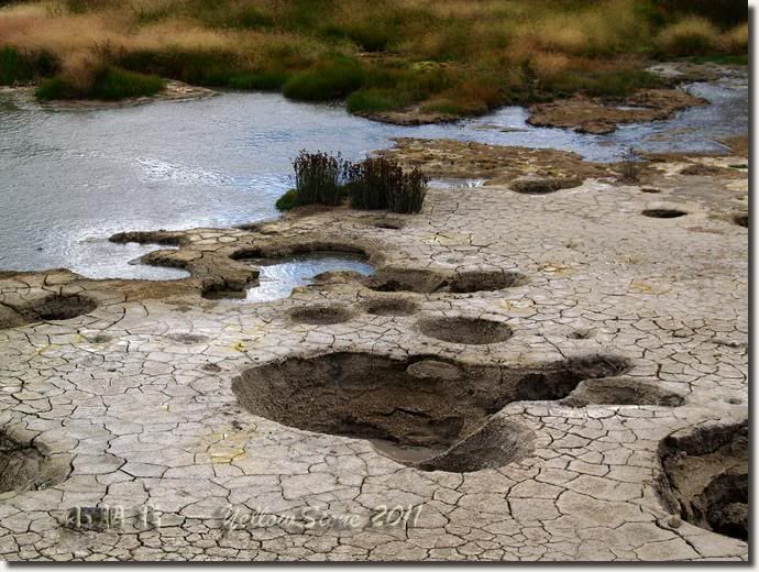 2.7、Mud Volcano。 终于到了Mud Volcano,不停有泥浆的气泡冒出,整个一个泥巴坑啊,旁边的岸上都是泥巴干涸了以后龟裂的纹路。http://i207.photobucket.com/albums/bb157/lxcgood/Yellowstone%20NP/USApark240.jpg----