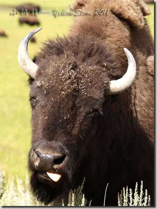 2.6、从峡谷去Mud Volcano的路上,就经过Hayden Valley,它是一片河谷,是看动物最好的地方。漫山遍野成群的Buffalo整天都在那一片晃悠。