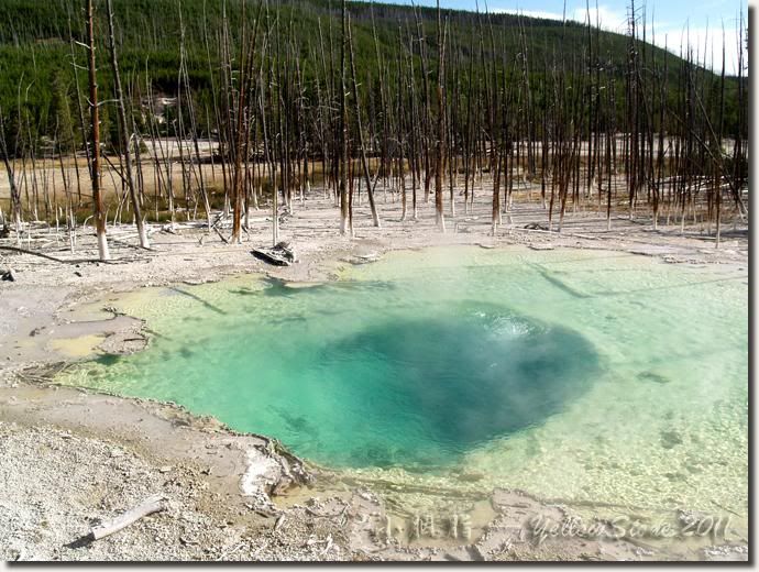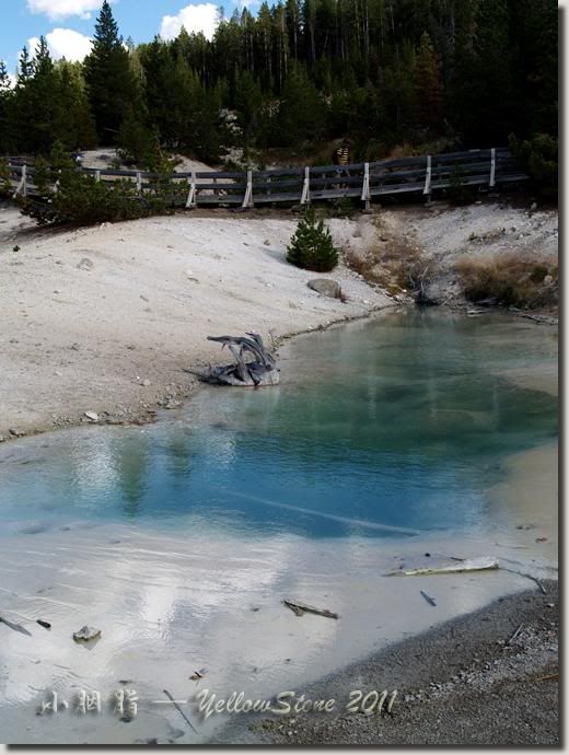 这是经过Steamboat Geyser(蒸汽船间歇泉)的Trail再往前走不远看到的,叫Cistern Spring(水箱泉),颜色清澈翠绿,椭圆的泉眼像戒面一样,配上后面的枯树背景也挺美。http://i207.photobucket.com/albums/bb157/lxcgood/Yellowstone%20NP/USApark282.jpg----