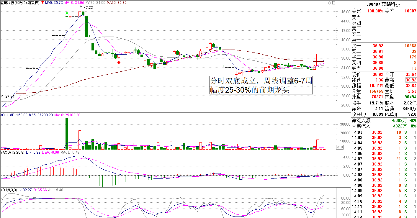 新股的002930仍继续拉升,但多只二板 三板品种开始出现拉升后的大单卖出分化,加上一批前期三板四板连续调整,这里除了有板块效应的首板可跟进,其他放弃跟进,等下周看有无新的低位板块出现,今日主要是钴资金回补大。我们主要配置300487 300477,技术上当前主要锂矿钴矿等品种。