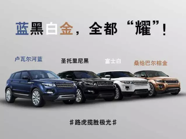 动作最快的要数#路虎揽胜极光#了,“蓝黑白金,全都‘耀’!”如此直戳人心,直白又带有心理暗示的广告语真的许久不见了,堪比“今年过节不收礼,收礼只收脑白金”。灰色衬底,配合黑体外加山寨“# #”的话题符号,也是有种说不出的高大上的感觉。小编窃以为,也许是营销团队忙着过年吧,文案是门口值班室老大爷做的。美丑永远是决定转发最关键的因素,所以“蓝黑白金”话题之争,揽胜极光负分滚粗。同级别文案还有福田拓路者。