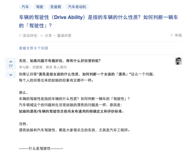 单缸12涡轮:(工科身文艺心)涡轮君生来一颗博爱心,知识对于汽车驾驶、汽车理论、汽车工艺、汽车市场、产品线有着全方位的覆盖,作为绅dou士bi一枚,涡轮君的确达到了知乎的宗旨——“关注涡轮,发现更大的世界”(推荐指数:5颗星)