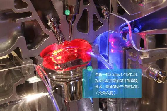 以通用的这款Ecotec系列发动机为例,这款发动机上有涡轮增压、缸内直喷、进排气双连续可变气门正时(DVVT)三大国际主流技术,并且还采用了最先进、也是难度最高的中置直喷(Central SIDI)方案,目前只有通用汽车等少数汽车企业成熟地掌握了这项技术。所谓中置直喷,就是把喷油器安置在气缸顶部活塞的正上方,向气缸内竖直喷射油雾。