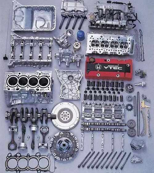 图为本田VTEC红头F20C拆解图,可以看到凸轮轴上的高低两套凸轮