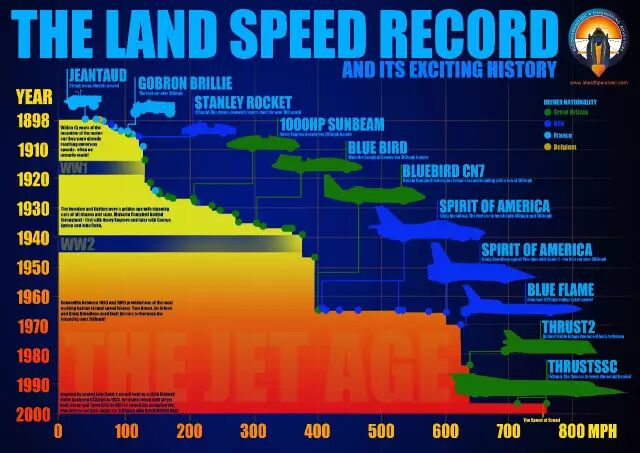 随着新一代布加迪Chiron的面世和Bloodhound SSC对陆上速度记录的再挑战,这两项记录都有可能在今年被打破。人类对于速度的追求永无止境,虽说一辆超跑90%的速度在90%的时间都是没用的,但就是那10%时间体现出的那100%的速度才是其价值所在。从徒步到马车,从蒸汽机车到内燃机驱动的汽车,从喷气式飞机到土星五号运载火箭,人类所能达到的速度极限在一步步被刷新。那些创下当年速度记录的车子也将名留史册,见证着汽车工业的的发展。