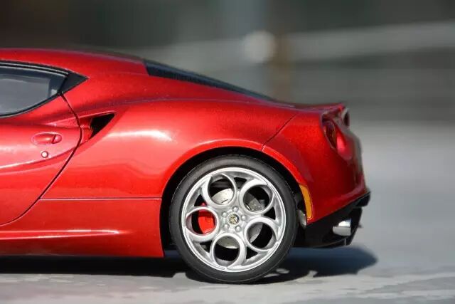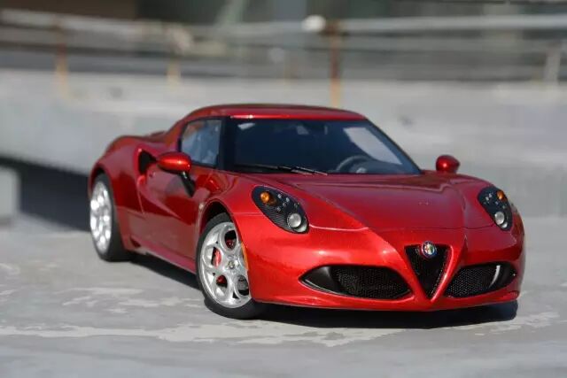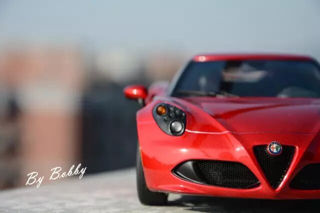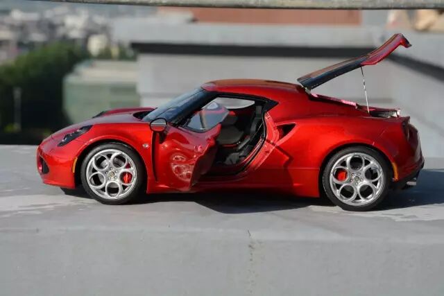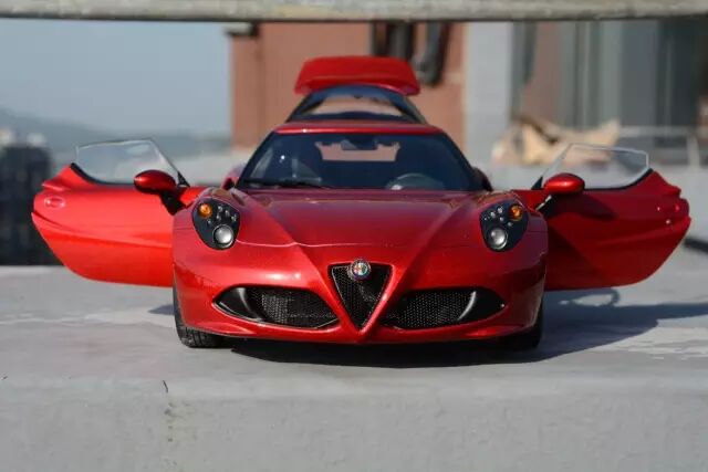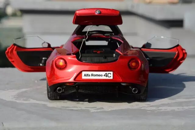 在性能车都在追求更大马力,更拉风外观的现代,阿尔法罗密欧反其道而行之,4C的1.75T直列四缸引擎,仅有200匹马力,但得益于碳纤一体式座舱,以及大量轻量化材料的运用,4C仅重895公斤。不需要很大的马力,不需要唬人的外观,4C这样一台轻量化的优雅性感跑车,同样能满足你的所有欲望!4C,来自亚平宁的妖娆,其极低的产量让世界上只有少数人能够拥有它的美丽,但是通过车模,我们还是能享受到那种如同真车的拥有感,这大概就是车模最大的乐趣所在。