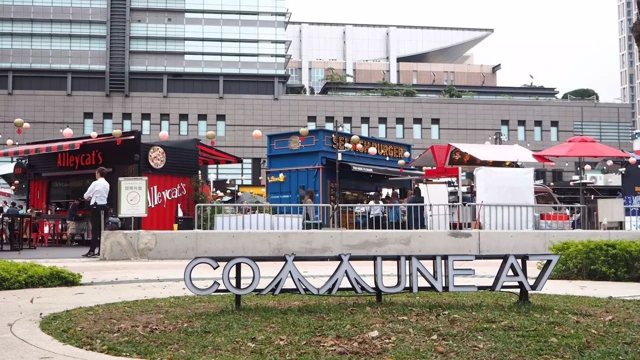 这块台北信义区都市开发计划编号 A7的空地,在复合式商城与旅店新地标Taipei Sky Tower诞生前,结合30个饮品品牌的货柜空间呈现,整个集市约6600平方米,除了货柜店家前提供的座位外,Commune A7还设置了座位区,集结了美式汉堡、港式鸡蛋仔、特色咖啡、精酿啤酒、日式串烧、手做茶饮与披萨等30个品牌。