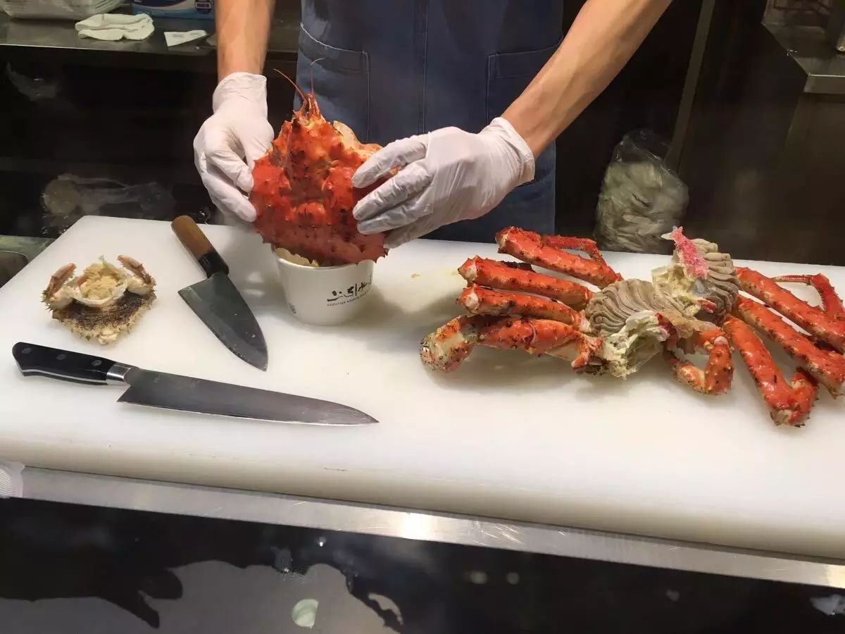 活蹦乱跳的牡丹虾,跳脱的比目鱼,喷水的象蚌贝,张牙舞爪的松叶蟹等着刀俎。只有你挑选好,烹饪区才会帮你现场烹饪;心急者,立吞区是上佳之选;寿司、烧烤、锅物都需要耐心候位,而且会很久。