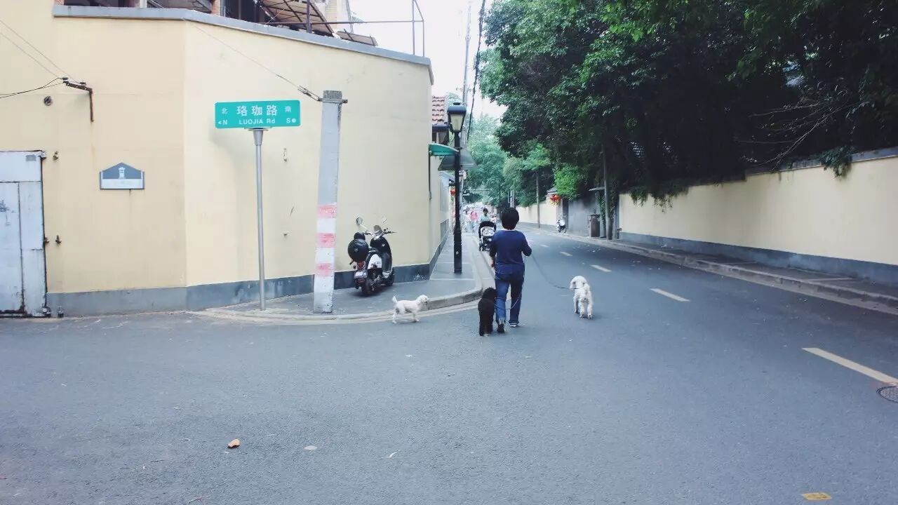 在这片街区的法国梧桐树影中穿行,大森推着单车慢慢前进,或许迷失了方向,或许找不到心里念想着的黄包车的踪迹,但巧然地与遛着小狗的老人擦肩而过,偶然瞥见空无一人的十字路口就直接联想到Beatles那张专辑封面,想拍下着探出墙头的爬山虎却被骑着单车的人成为另一道风景。