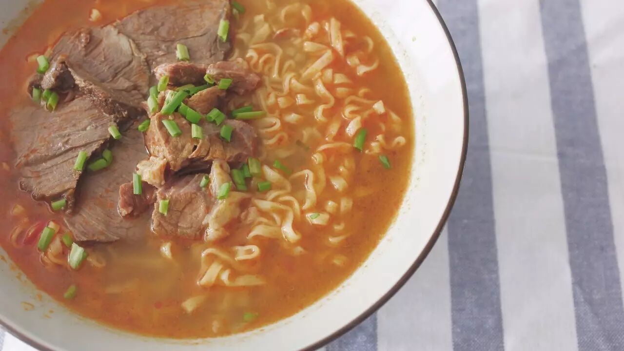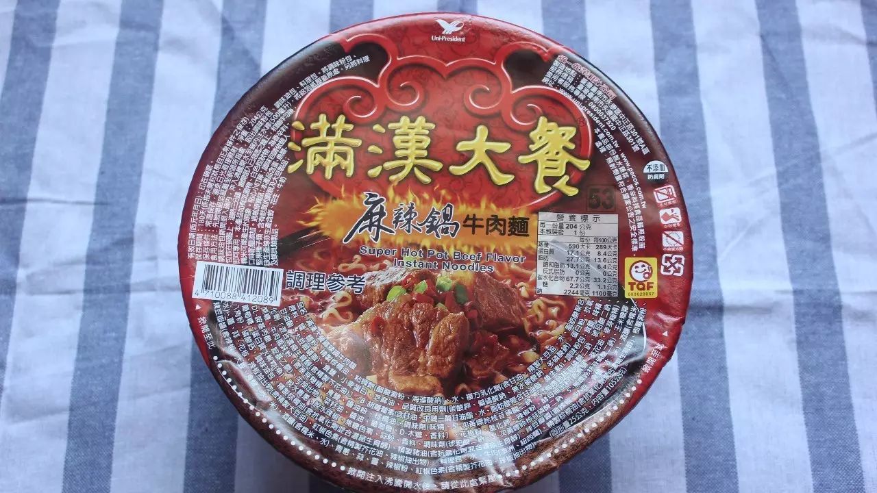 记得在念书时,逛超市的时候总会被柜台前那一款将近20块的满汉大餐泡面所惊呆。当用攒下来时零花钱买下这一碗面才知道它的不简单——里面有三块厚实的牛肉。(测评中牛肉给的最吝啬的)。麻辣锅牛肉面可谓是继经典款之葱烧牛肉面后一款非常不错的产品,虽然味道会偏咸一些,但汤底熬制的相当醇厚。切几片卤牛肉再撒一些葱花真的很好吃。辣度也不会很辣。所以怕辣的朋友不必担心太多~
