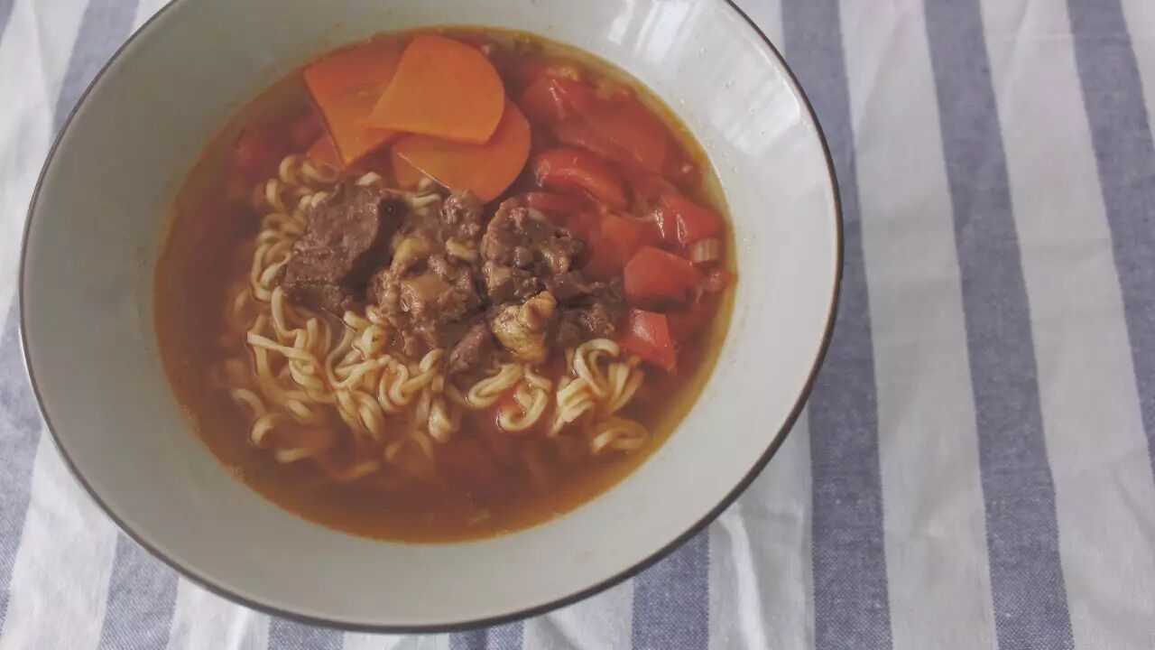 比起一度赞和满汉大餐来说,味丹的味味一品可能会偏冷门一些,但这也是在台湾当地家喻户晓的品牌。煮面的时候放了半个番茄,与牛骨一起熬煮的汤底竟然会意外的香。面条很筋道,不像细面不耐热就一下子烂掉。关键是要把握煮面的火候和时长。牛肉肉质软烂,不柴。酱包粉末包都只放了三分之二,毕竟牛肉包里面也有高汤。料包太多东西会咸很多。之所以太咸是因为酱包的豆瓣酱比例比较多。所以要慎重。
