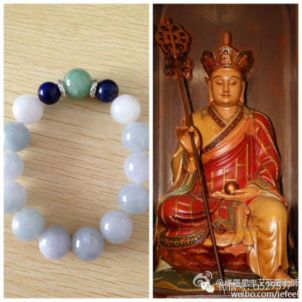 地藏王菩萨掌管人累世缘分,让善缘得来。缘聚缘散皆有定数,只是把握当下,珍惜,再珍惜。地藏王菩萨,又称为【宝珠地藏】,手中所持的宝珠,又称为【摩尼宝珠】,圆形手珠,代表缘缘满满,缘份不尽,幸福不空。绿色翡翠寓意生生不息,代表地藏王菩萨,两颗蓝色的青金石,一左一右,象征你与情人累世的善缘由地藏王菩萨牵引丶守护。12颗白色丶紫色翡翠,代表圆满12因缘。https://mmbiz.qlogo.cn/mmbiz/osickG6kM9H0dWjPhw9S2ibwU0Kd8JBAVaRAOJpiav3wWt2oG7jvWAH2vY7gFEjFRfB6rP6pwjHT94gzj3iasRSX3w/0