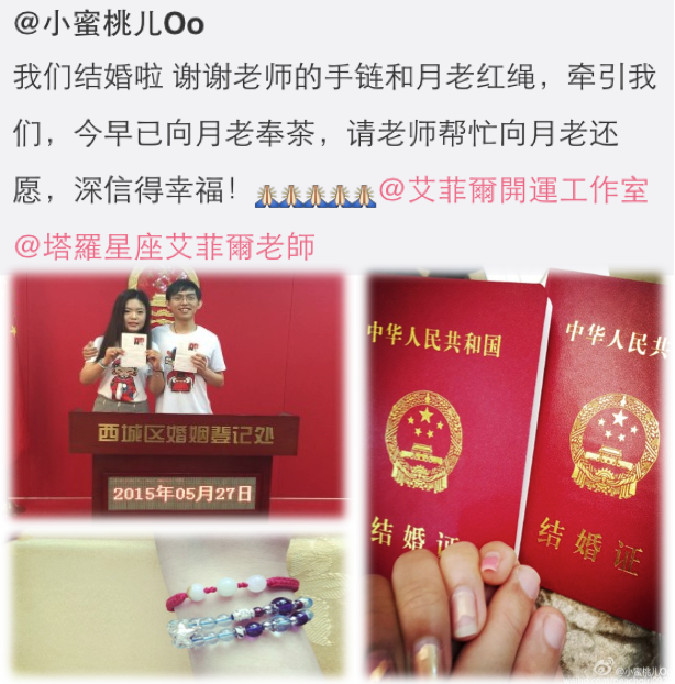 小夥伴好像在做喜事接力一樣,老師真的很開心一直收到结婚的喜气见证!特别转出来和大家分享,让艾粉们也可以感染喜悦。让我们一起来沾沾喜气,感受一下結婚的幸福!在艾菲尔老师月老庙微信tw529597直接输入关键字「月老图」,就可以得到人人称奇的灵图,帮自己加强恋爱运势。