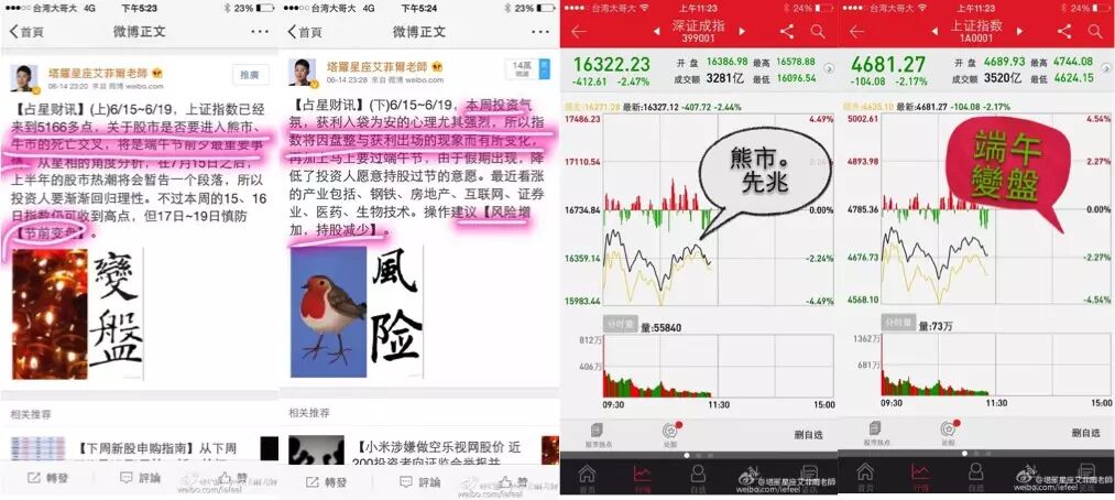 上礼拜的财讯老师成功提醒大家「风险丶变盘」,希望这一波端午前的节前变盘,你已设好停损点,并且把持股比例作了适当调整。上半年的牛市将在七月中旬告一段落,最近投资人更要注意守财丶留财。要降低持股丶理性面对熊市来临。
