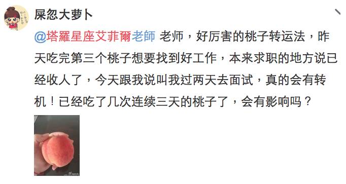 老师建议小伙伴转运的小偏方,可以连续吃三天的桃子。因为桃子是盛夏之果,是长寿丶辟邪丶迎福丶贺喜的象徵。从今天起到8月8日,连续进行三天,每天吃一颗桃子,吃桃子的时候想像美好的事情会发生在自己身上。用吸引力法则替自己转转运。