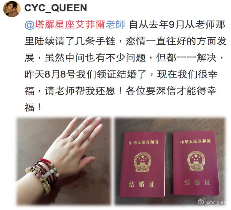喜事一直不间断喔!老师真的很开心最近艾粉们喜事连连,特别转出来和大家分享,让艾粉们可以沾沾喜气,感受一下結婚的幸福!想跟老师聊聊心事,或请购个人专属开运水晶,请直接微信与老师联系。