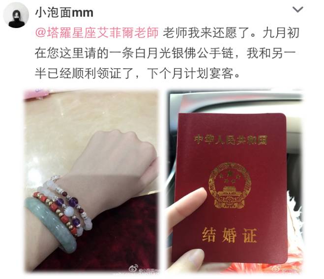 太幸福啦!老師又收到一則艾粉結婚的喜訊,真的很开心最近艾粉们喜事连连,特别转出来和大家分享,让艾粉们可以沾沾喜气,感受一下结婚的幸福!想跟老师聊聊心事,或请购个人专属开运水晶,请直接微信与老师联系。