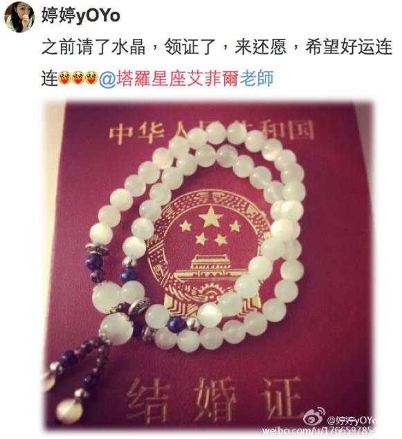 老师收到一则艾粉喜事临门的消息,真的很开心看到她得到自己的幸福!特别转出来和大家分享,希望可以让你沾沾喜气,感受一下结婚的喜气!想跟老师聊聊心事,或请购个人专属开运水晶,请直接微信与老师联系。