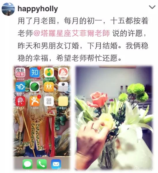 有位艾粉向老师分享她的喜事,真的非常恭喜她!大家都来沾新娘子喜气。说好话得好运,下一个分享幸福喜悦还愿的一定就是妳!在老师的官方微信a529597直接输入关键字【月老图】,可下载人人称奇的灵图!今天老师在「新浪微博」有免费测字活动,想要参加的人,可以输入关键字【免费测字】看详细的内容喔!