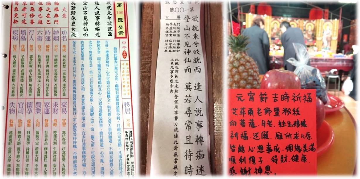 2/22是元宵节,老师有到庙里参加元宵节法会,颂经丶消灾做功德。而老师也特别在庙里帮粉丝抽得一支「中平签」。整个大意是说「凡事必须把心定,若犹豫不决丶若虎头蛇尾则徒劳无功。而黑夜之後便是黎明,看似目前运势受阻,其实你正通往成功的道路,不要放弃!」,尤其春天懒懒的季节,容易犯春困丶提不起劲,要注重勤奋,不可浑浑厄厄。否则多虚少吉,切记丶切记。