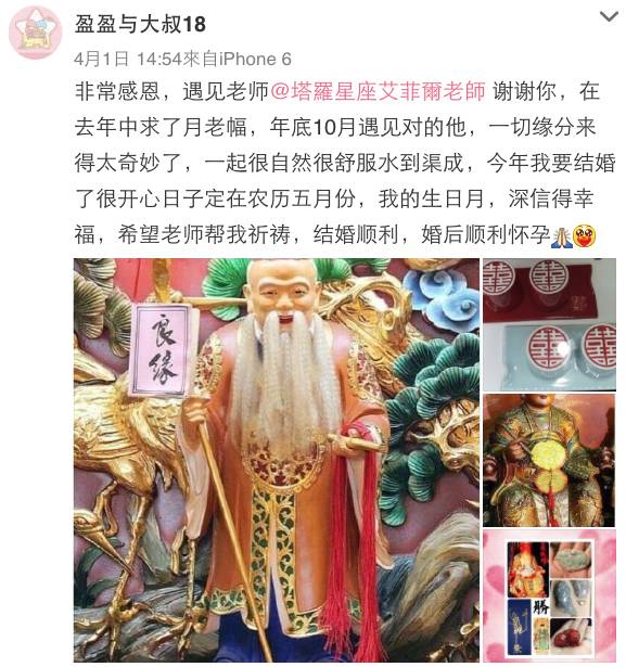 恭喜这位幸福的粉丝,老师特别发出来希望你也能沾沾她的爱情好运!老师会到庙里帮她还愿感谢神赐恩典,愿看过见证的人都幸福丶甜蜜!在老師官方微信a529597直接输入关键字【月老图】【管仲星君】【招财金蟾】【注生娘娘】【魁星踢斗】【药师佛图】,可下载人人称奇的灵图!