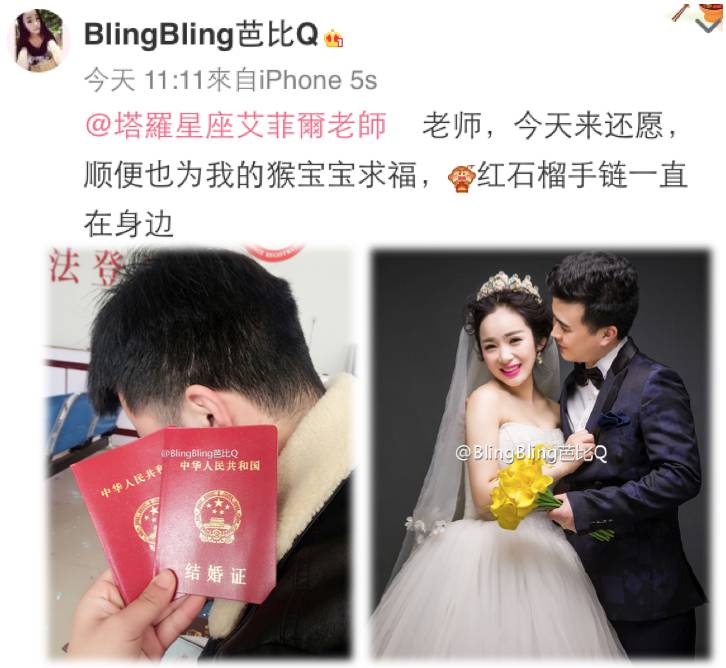 早上看到这位粉丝结婚的消息,特别开心,特别转出来和大家分享。大家来沾喜气,下个结婚还愿就是你。老师会在庙里帮这位深信幸福的粉丝还愿。想跟老师聊聊心事,或请购个人专属开运水晶,请直接微信与老师联系。