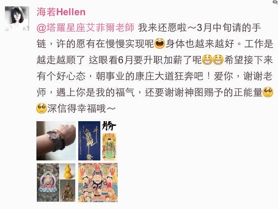 分享好运,会更开运。恭喜这位粉丝佩戴开光手炼,愿望慢慢实现,工作顺利。个人专属开运水晶、命理咨詢,可直接微信老师,老师亲自帮你推荐。