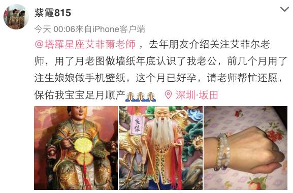 分享好运,会更开运。恭喜这位粉丝佩戴了开光手炼、用了月老圖與註生娘娘圖,遇到另一半,也順利好孕。个人专属开运水晶、命理咨詢,可直接微信老师,老师亲自帮你推荐。