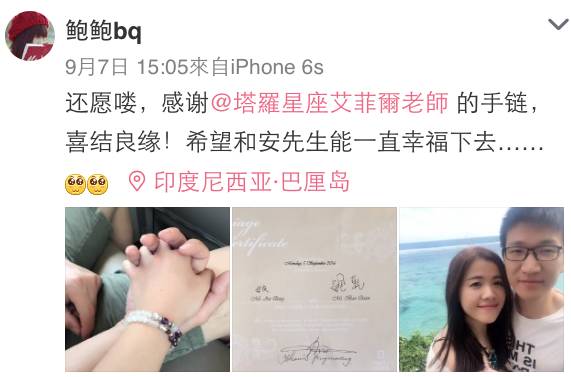 老师今天特别发出一位艾粉的结婚喜讯与你分享,很高兴她带了手炼後觅得良缘!希望每个看过见证的人也能和她一样找到自己的幸福!老师会到庙里为她还愿,感谢神赐良缘!