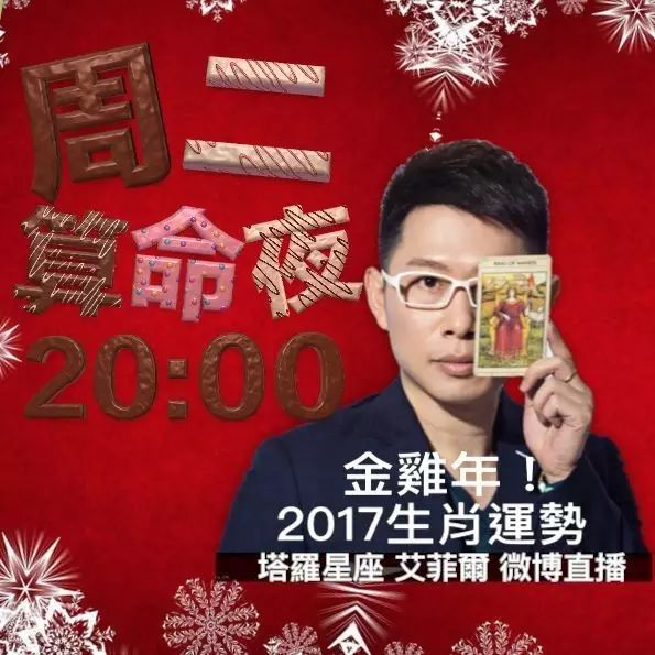 今天12/13(星期二)晚上8:00,老师在【新浪微博一直播】,要告诉你【2017生肖运势】,艾粉们千万别错过喔!不见不散!