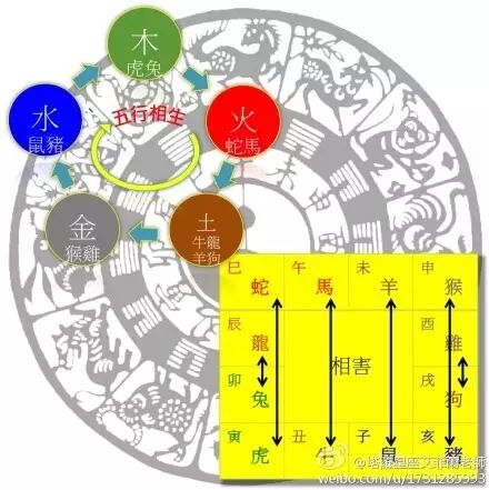 若不幸遇到冲突丶或互害的问题,是可以找和事佬来解围的!龙兔相害要找火(蛇或马),或是生一个属火的小孩来化解,虎蛇相害找水(鼠或猪),牛马相害找木(虎兔),鼠羊害找金(猴鸡),猪猴相害找土(牛羊龙狗),而狗鸡相害找火(蛇马)来疏通。