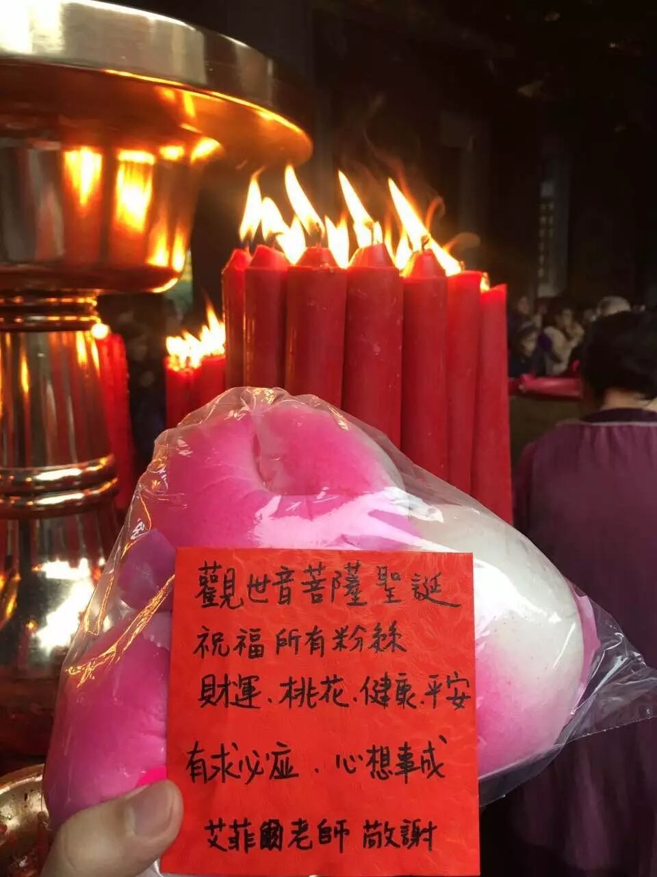 昨天是观音圣诞千秋,老师在寺庙帮所有粉丝献寿桃和平安烛丶帮观音菩蕯祝寿。愿见过现场祈福照片的人,同享祈福献香丶献桃丶献烛功德,也可为父母长辈添寿。