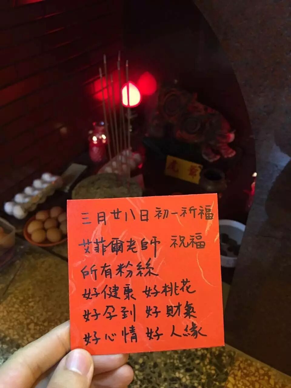 昨天3/28是农历的三月初一,老师特别到庙里为所有的粉丝献花丶添香丶奉茶祈福。祝福所有艾粉好健康丶好桃花丶好孕到丶好财气丶好心情丶好人缘。另外还帮艾粉抽出一只平安签,签意为「现在你心中所期待的这件事,需要你用更多的耐心和毅力,需要更多的时间去酝酿而成,但请别太过彷徨,未来会越走越顺利丶并逢凶化吉。」愿看过此签的人,都能平安顺利丶心想事成。
