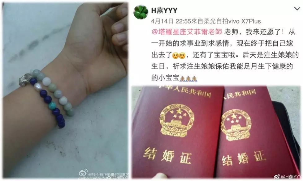 前几天有位艾粉向老师分享了她的结婚喜讯,真的很开心!她佩戴了老师用五行八字推荐的「姻缘手炼」,现在已和老公幸福领证,也有了小宝宝!老师会帮她去庙里还愿,大家一起来沾沾她的幸福喜气,愿看过此见证的人都能觅得良缘丶幸福美满!