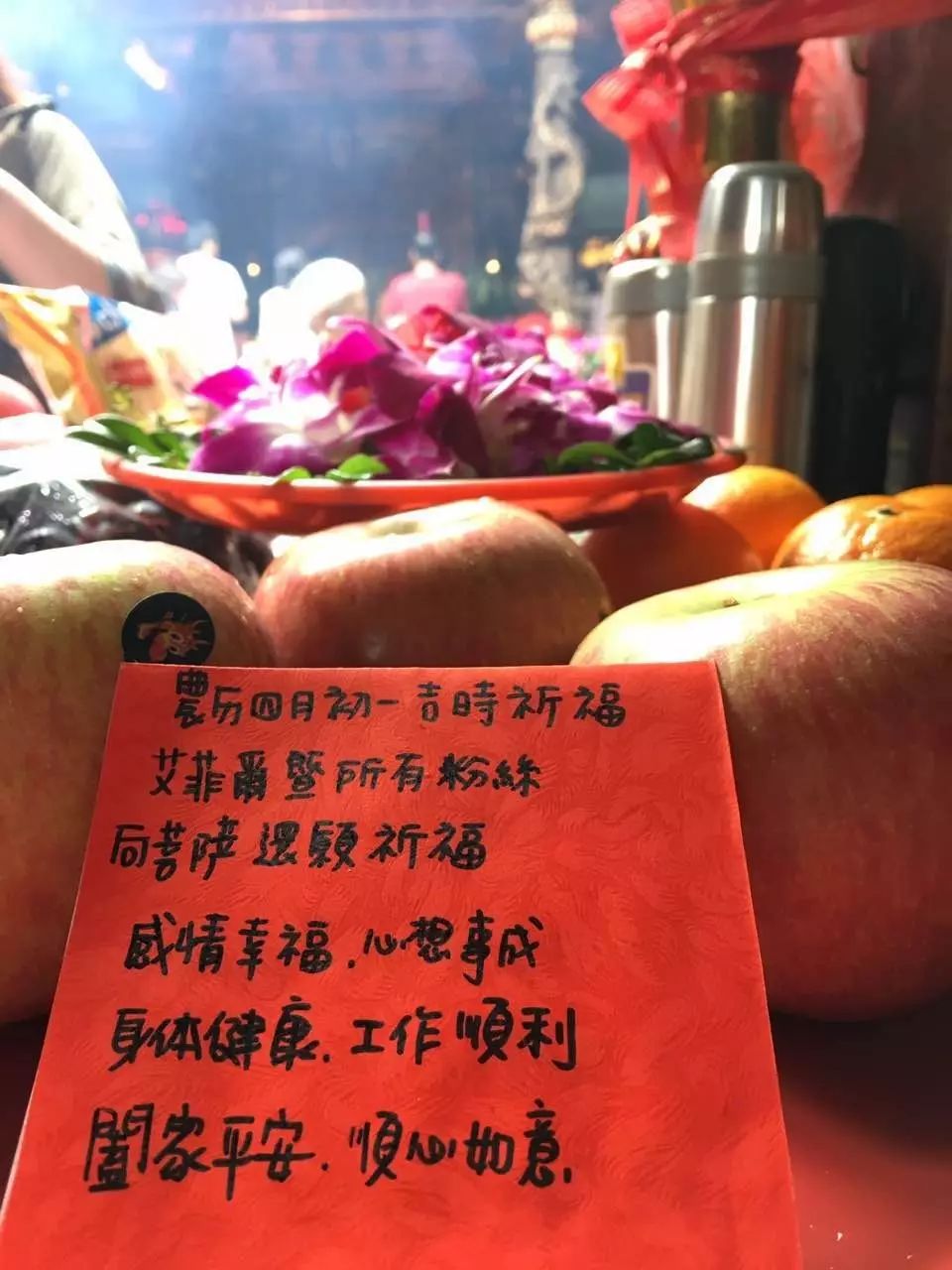 昨天农历四月初一,老师特别到寺庙為艾粉祈福、还愿,同时帮大家抽出一支上吉签,签诗的寓意为『代表着你心里想的这件事不需要太过苦恼,今後先从内心下功夫,认真修心清除妄念,并且坚定目标,一定能够摆脱困境,迎来好运与祝福』!愿看过此签的人,都感受到菩萨慈慧,顺心如意丶好运降临!