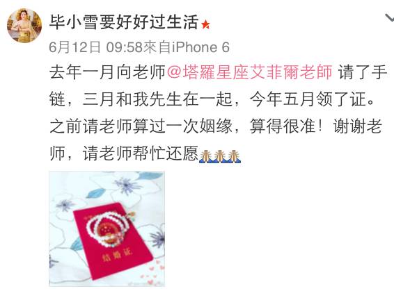 很高兴看到这位幸福的粉丝来跟大家分享她的结婚喜讯,特别恭喜她佩戴了老师用五行八字推荐的『开运手炼』後,遇到了真命天子並顺利领证。老师会抽空到庙裡帮她还愿。大家赶紧来沾沾她的喜气,愿看过此见证的人都能觅得良缘丶幸福美满!