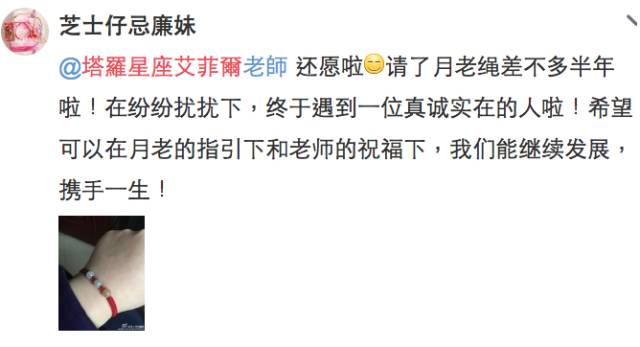 分享好运,会更开运。恭喜这位粉丝配戴开光手链,遇到真爱!个人专属开运水晶丶命理咨詢,可直接微信老师,老师亲自帮你推荐。