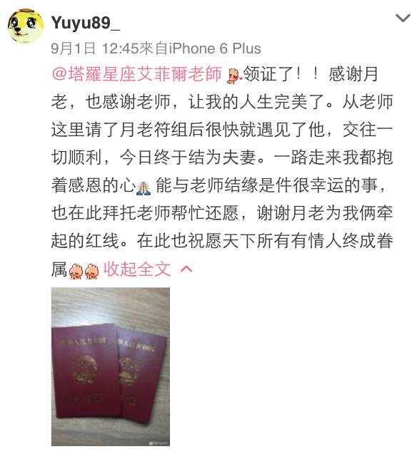 老师前几天收到一个令人开心的喜讯,特别转出来和你分享!很高兴这位艾粉佩戴了老师推荐的「月老符组」,遇到了生命中的他,現在已和另一半幸福领证,老师会帮她到庙里还愿,大家一起来沾沾喜气!希望看过这个幸福见证的你,也能找到真爱丶心想事成!