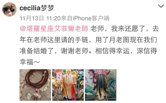 分享好运,会更开运。恭喜这位粉丝佩戴开光手链,遇到良缘丶准备结婚。个人专属开运水晶、命理咨詢,可直接微信老师,老师亲自帮你推荐。