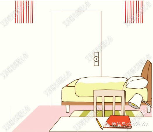 在卧室的门那面墙左右各挂上九条九寸(27.5cm)红线!