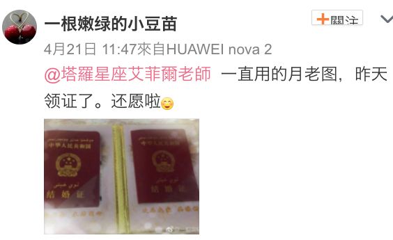 老师前几天收到一个令人开心的喜讯,特别转出来和你分享!很高兴这位粉丝受到月老公公的庇佑,已和另一半幸福领证,大家赶快来沾沾桃花与喜气,为自己加持好运!在老师的官方微信a529597输入【月老图】,可下载人人称奇的灵图!