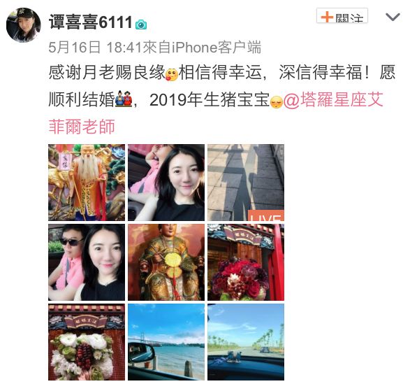 老师前天收到一个令人开心的喜讯,特别转出来和你分享!很高兴这位粉丝受到月老公公的庇佑,现在已经准备和另一半领证!大家赶快一起来沾沾桃花喜气,相信下一个公布好消息的就是你!在老师的官方微信a529597输入【月老图】,可下载人人称奇的灵图!
