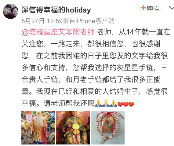 这是老师近期收到最开心的喜讯,特别转出来和你分享!老师也要感谢这位艾粉的长期支持及信任!特别恭喜她,佩戴了老师用五行八字推荐的「灰星星手炼」,已和老公幸福领证!大家赶紧来沾沾她的喜气,希望看过这个幸福见证的你,也能找到真爱丶心想事成!