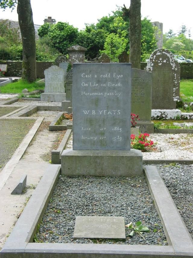 这位爱尔兰诗人,1923年诺贝尔文学奖得主叶芝,他的墓志铭是他的晚年诗作《本布尔宾山下》的最后一句:对人生,对死亡,给予冷然之一瞥,骑士驰过。