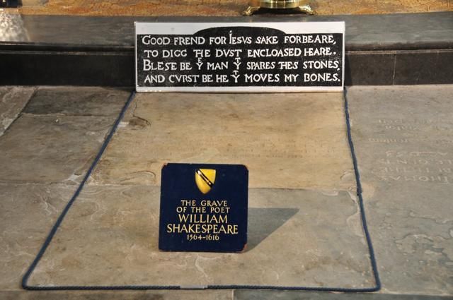 莎士比亚在世界文学史上的地位就不用多说了。他的墓志铭表达了“入土为安”的思想:看在耶稣的份上,好朋友,切勿挖掘这黄土下的灵柩;让我安息者将得到上帝的祝福,迁我尸骨者定遭亡灵诅咒。