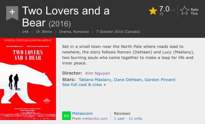 故事发生在北极附近一个前不着村后不着店的小镇,两个年轻人在这里相遇并坠入爱河。