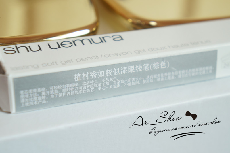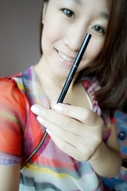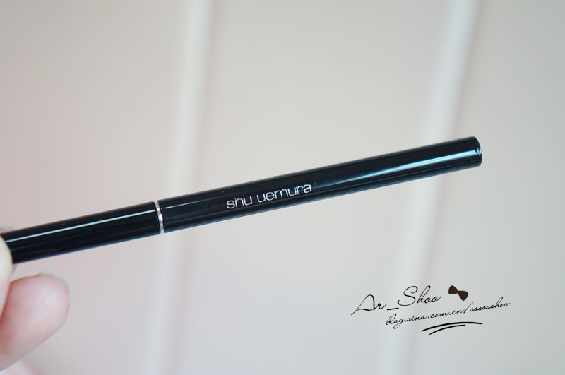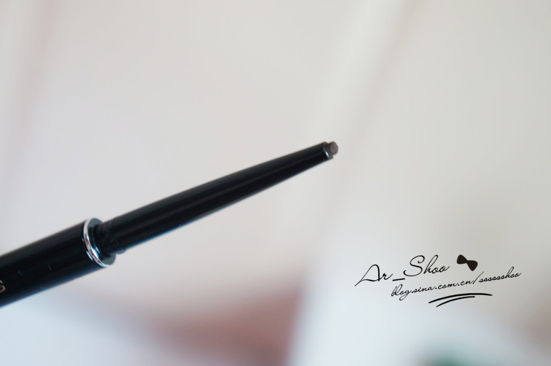 因为我选了棕色,最近不知道为什么觉得黑色特别的硬实,而且头发也染了棕色,所以用棕色的眉笔啊,眼线神马的,会更加的自然~哈哈哈~~~这款眼线笔它还防水防泪,能够长达12小时全天持久零晕染。非常简洁便携的一款,无需卷笔刀或笔芯削,更是无需搭配眼线刷的眼线胶,我相信这款产品一定会成为植村秀全新品牌标识性明星款彩妆单品。