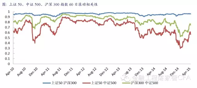 (二) 上证50、中证500、沪深300相关性: 上证与沪深组合适合中长线价差套利,沪深与中证组合适合中短线价差套利,上证与中证组合适合大小盘走势差异的策略
